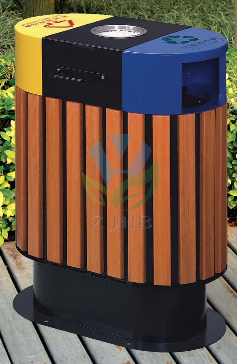 采用镀锌板和防腐木加工制作而成,该款为分类垃圾桶,双色分类设计,桶顶有烟灰缸,此款为常用钢木垃圾桶,设 计 美观大方,使用方便易清洁,适用于景区、公园、社区、商场等公共场所。